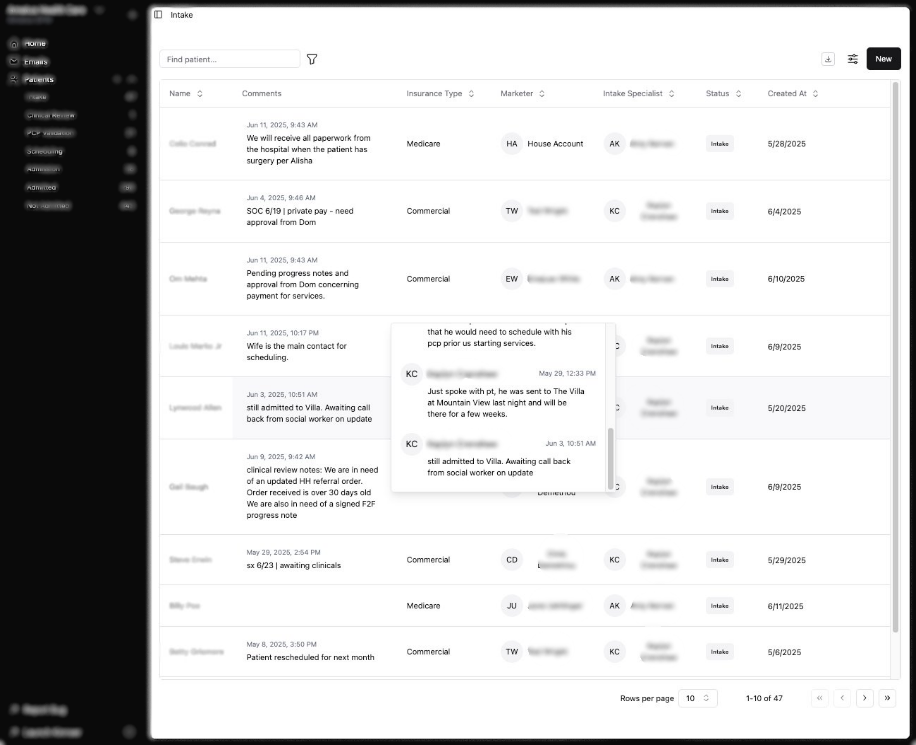 Keep your entire team aligned with a unified, real-time referral dashboard. Vitalytix provides clear visibility into referral status, next steps, comments, and updates—ensuring seamless communication, faster collaboration, and a more coordinated admission process.
